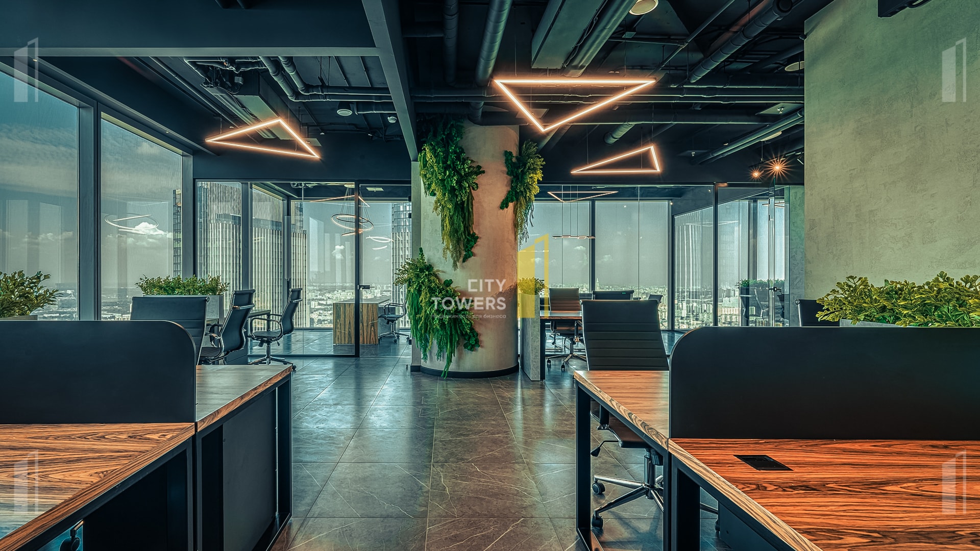 В офисе высокие потолки 3,65 метра и панорамные окна с вдохновляющими видами на деловое сердце столицы — Москва-Сити. Это обеспечивает оптимальный уровень инсоляции и создает ощущение простора и свободы для вашей команды.